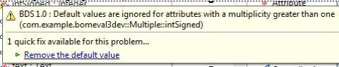 If you attempt to set a default on an attribute with a multiplicity greater than 1, the following warning is generated: