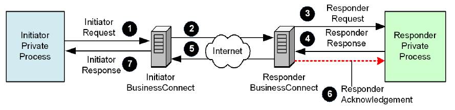 - A Responder acknowledgment is sent to the Responder private process indicating whether the response has been forwarded to the trading partner.