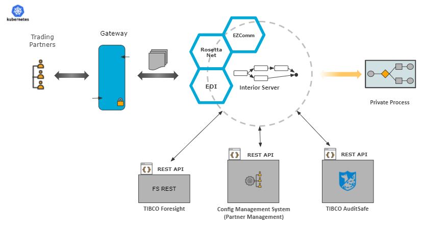 For detailed information of the components, see the following high-level architecture of TIBCO BusinessConnect Container Edition:
