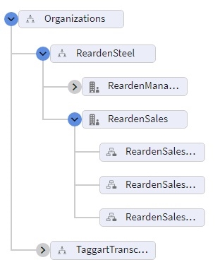 The icon to the left of each organizational entity indicates the type of entity, as follows: