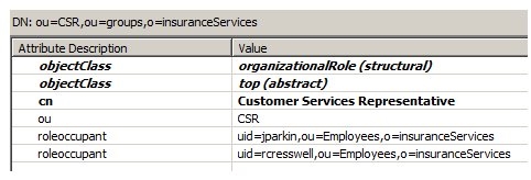 If you are using an LDAP group source in the LDAP container definition, a group DN is used to identify the directory entry that is the group. When a group DN is specified, a member attribute is also specified, which holds the collection of member identifiers (DNs). This provides the list of candidate resources.