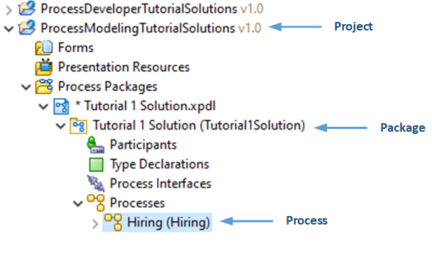 In TIBCO Business Studio - BPM Edition there is a hierarchy consisting of project, package, and process: