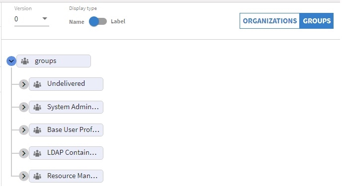 Note that after you select Version 0 in the Version field drop-down, you must click GROUPS. By default, ORGANIZATIONS is automatically selected when you select a different organization model version.