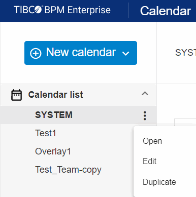 - In the left collapsible pane of the Calendar capability, click Calendar list.