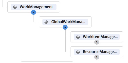 If a group has sub-groups, you can assign resources to either the parent group or the sub-group. Resources that belong to sub-groups receive work items that are offered to their parent groups, as well as to the sub-group to which they belong. Using the example above, resources in the WorkItemManagement and ResourceManagement groups will also receive work items offered to the GlobalWorkManagement group.