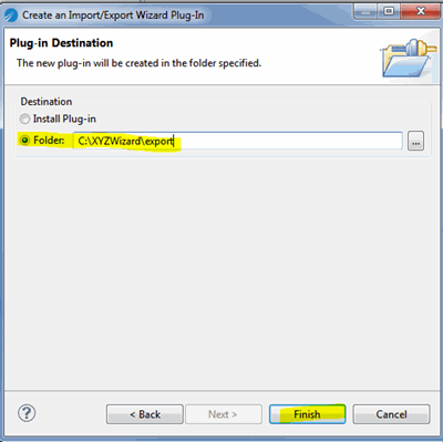 - Click Folder radio button to specify a folder to export the new plug-in and then click Finish.