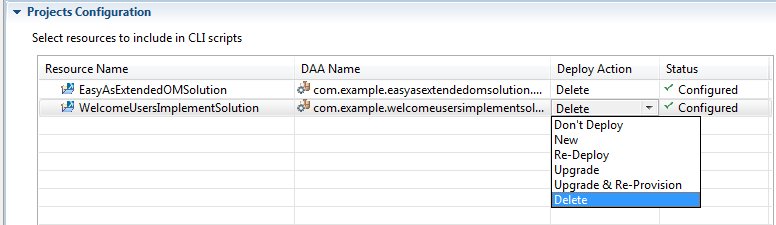 The deploy or import-and-deploy command performs the deployment action specified for each resource. If you have specified this as Delete, as in step 1 above, this will be to delete the project from the BPM server.