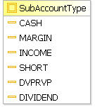 <element name="topElement" type="SubAccountType"></element> <simpleType name="SubAccountType"> <restriction base="string"> <enumeration value="Cash"></enumeration> <enumeration value="Margin"></enumeration> <enumeration value="Income"></enumeration> <enumeration value="Short"></enumeration> <enumeration value="DVP/RVP"></enumeration> <enumeration value="Dividend"></enumeration> </restriction> </simpleType>