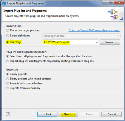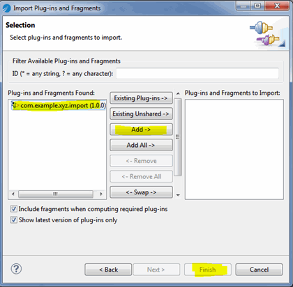Plug-ins and Fragments wizard and click