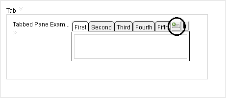 If you want to add a tab to an existing tabbed pane, click the button for adding a new child pane. This button is circled in the figure New Child Pane Button: