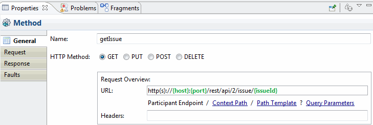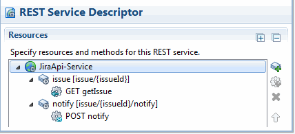 To call a REST Service you need to create a REST Service Descriptor (RSD) file (located in a separate REST Service project). The REST method from the RSD file can then be referenced from REST Service invocation activities.