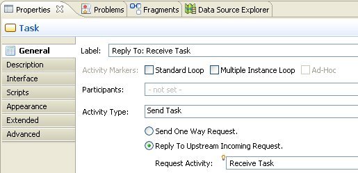 In this example, because the send task is configured as a reply to the receive task in the Properties view: