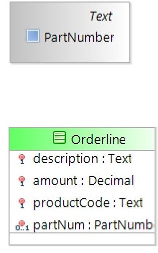 To do this, select the Primitive Type from the Elements section of the Palette. Having created one of these, you can name it. For our example, call it PartNumber. In the Advanced Properties sheet, you can define restrictions that are imposed on the field, such as numeric ranges for numeric fields and patterns for text fields. The patterns are specified using regular expressions. For our example, use: