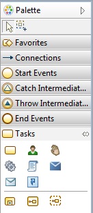 Click another tool to display the available sub-types. For example, click the Gateway tool to see the different types of gateways; this closes the currently open tool drawer if more space is required to open the new tool drawer. To change this behavior and cause the available tasks to remain open, click the
