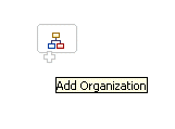 If you hover your mouse over the empty area of the diagram, an icon appears. In the Organization Model Editor, this is the Add Organization icon. Move your cursor on to the icon to display the Add Organization label as shown in the following illustration, and then click to create a new Organization in the diagram.