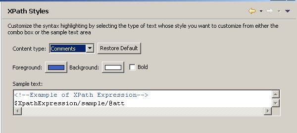 You can customize some of the settings for formatting, content assist, syntax highlighting, and the templates that are used by XPath scripts.
