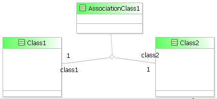 - You can right-click on the connection, and select Refactor To AssociationClass. The existing connection is replaced by an Association Class as shown in the illustration.