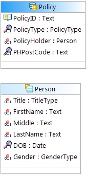 For example, in the following case data model fragment, the Policy case class has been optimized to search for policies by a policy ID or type, or by a policy holder's post code or date of birth.