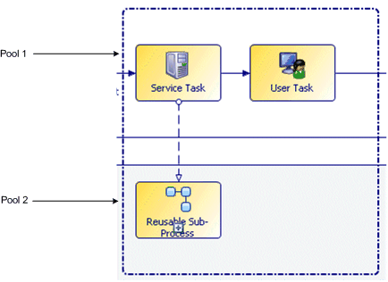 Groups are used to indicate a relationship between elements of a process by enclosing them in a dashed line. A group can span lanes and pools.