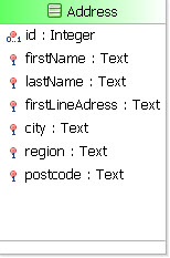 <complexType name="Address"> <sequence> <element name="firstName" type="string" /> <element name="lastName" type="string" /> <element name="firstLineAdress" type="string" /> <element name="city" type="string" /> <element name="region" type="string" /> <element name="postcode" type="string" /> </sequence> <attribute name="id" type="integer" /> </complexType>