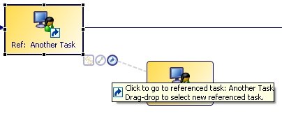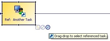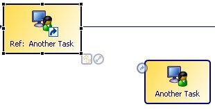 Tip: If the task to which you want to refer is not in the visible area of the Process Editor, drag the gadget to the right-hand edge of the Process Editor. After a short pause, the Process Editor scrolls to the right. Alternatively, select Diagram > Zoom Out until you can see the task to which you want to refer.