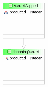Note that the multiplicity of productId in the basketCapped class is represented by a 1..n, that is, more restrictive that the shoppingBasket class productId that has unbounded multiplicity.