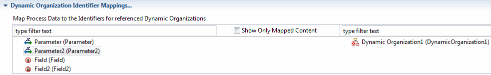 When a Dynamic Organization Participant is assigned to a task you need to identify the correct instance of the Dynamic Organization to use to resolve this participant at runtime. This is done using Dynamic Organization Identifiers which are mapped to process data.