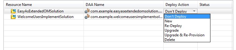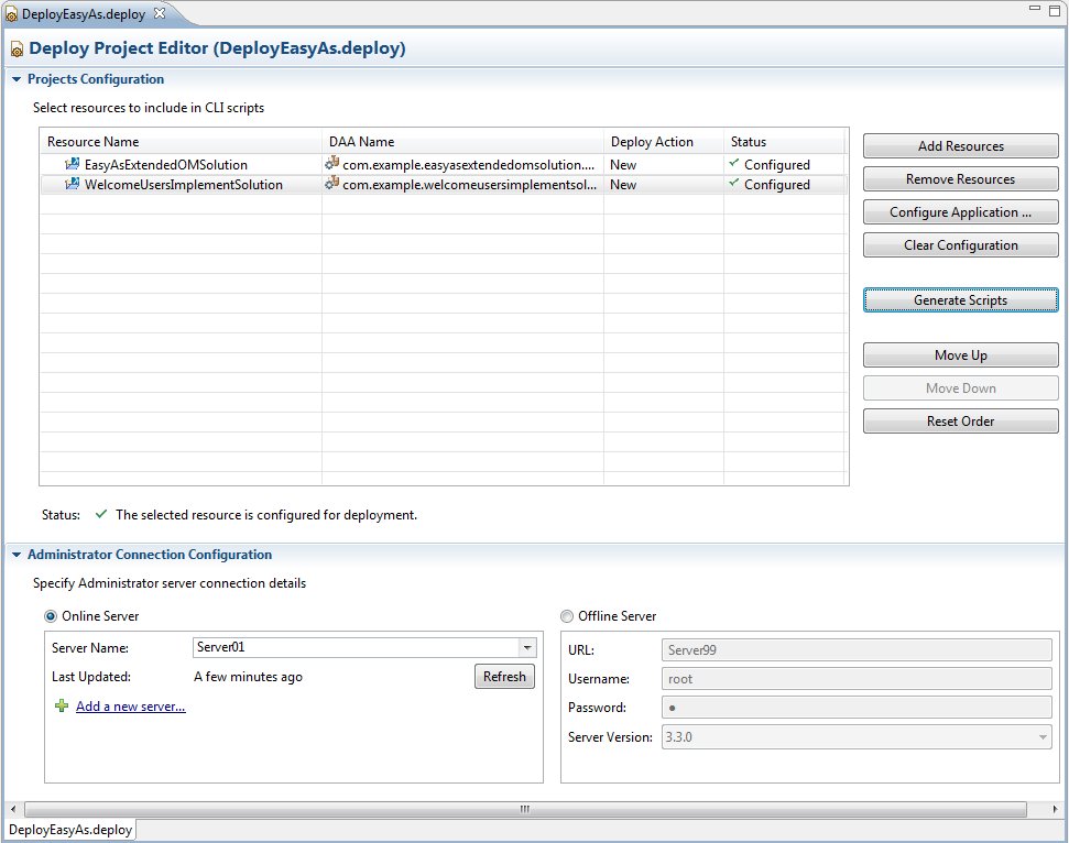 When you have added the projects and other resources that you want the deployment project to contain, you must configure those resources and generate a DAA for each of the resources. Depending on the state of the BPM projects, you may also need to specify some other details.