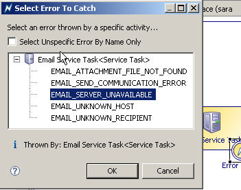 - when attached to an email service task, you can configure the catch error event to catch emails when the email server is unavailable: