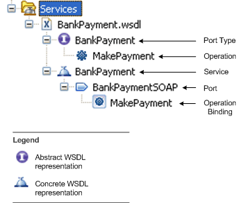 In the Project Explorer, both the abstract and concrete parts of the WSDL file are represented when you expand the WSDL file: