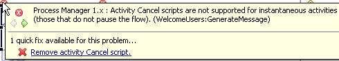 However, if a process has BPM set as a destination environment, any script task that has a Cancel script defined will show a warning message:
