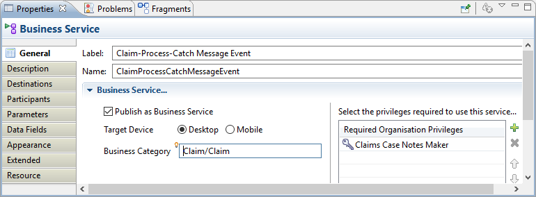 Decide which Target Device the published business service will have. Mobile users who use ActiveMatrix Mobilespace can only access business services for a Mobile Target Device.