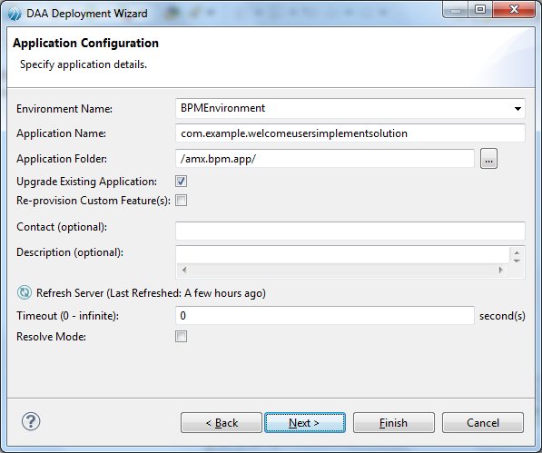 You can deploy an application to a BPM node by deploying its project (or the Distributed Application Archive (DAA)) to the appropriate deployment server.