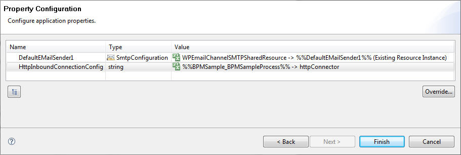 - Double-click the Property Value field, or select the property and click Override.... The dialog to override the selected property appears.