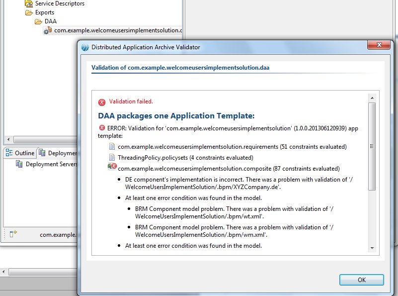 TIBCO Business Studio runs a series of checks on the generated DAA files. The DAA could be considered valid by TIBCO Business Studio, but not all requirements can be catered for. For example, a BPM project could be dependent on an Organization model. If that Organization Model is not deployed, the deployment of the BPM project will fail even though the DAA is considered valid.