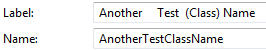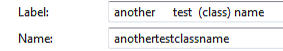 In the following example, you can see the quotation marks and spaces in the Label are removed in the Name: