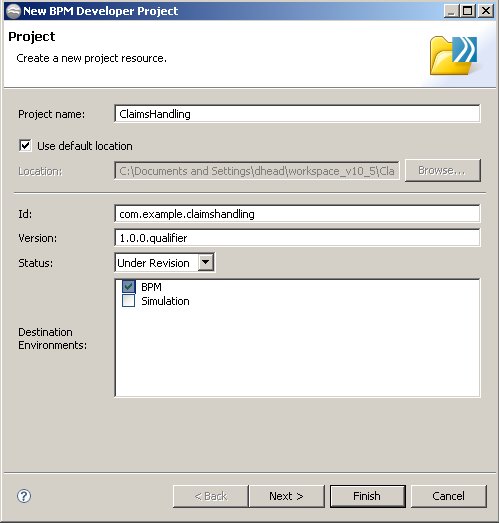 Note: If you enter a qualifier it is ignored, as the qualifier is a date and time stamp that gets created when the project is deployed.The specified version becomes the default for project artifacts such as process packages and organization models, and can be used to track revisions to the project. The version can be changed later. See Setting BPM as the Destination Environment for more information about versioning.