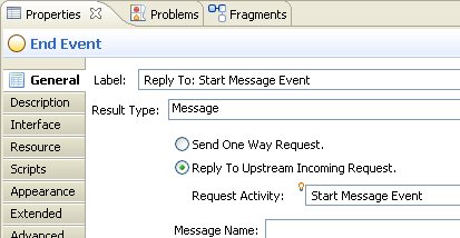Note: End message events are set to reply to upstream requests by default. In addition, if there is only one upstream request (for example, a start message event), the end event is automatically configured to reply to that request.