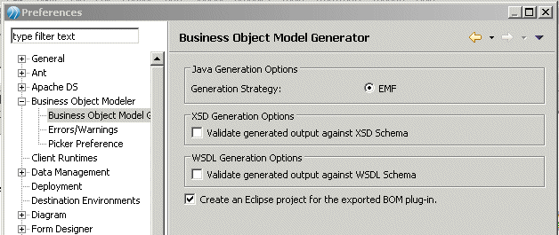 - If you check Validate generated output against XSD Schema, TIBCO Business Studio automatically runs the XSD validation rules for any business object model that you try to export in XML Schema format. If the model does not meet these validation rules, the XML Schema files are still created, so that you can examine them to diagnose the problem, but an error is generated.