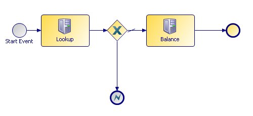The following example shows how the previous "get balance" example could be implemented as a sub-process (in this case, the process interface has normal start and end events rather than start message and end message events):