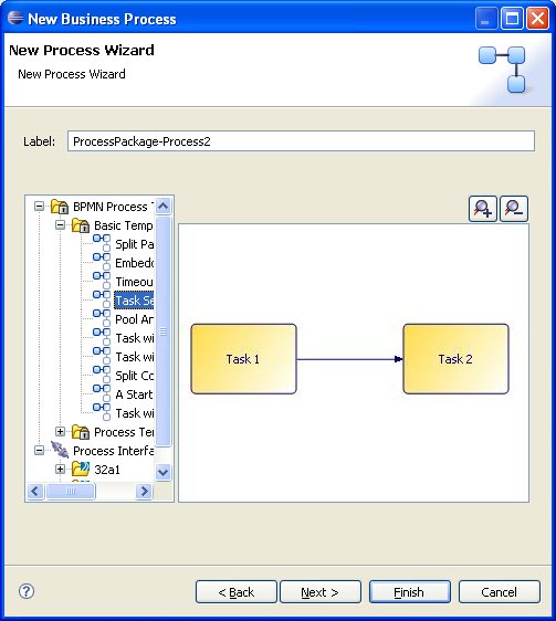 - Enter the Label of the process. To use a template to create the process, select the template and click Next. This example shows one of the basic templates (a task sequence).