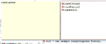 Next, type "." to give a list of the factory methods. This allows you to choose the type of Business Object to create, as shown below: