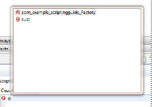 Next, type =co and press Ctrl+SPACE. Only the content assist that matches "co" in our example is displayed. Press ENTER to insert the Factory name into the script, as shown below: