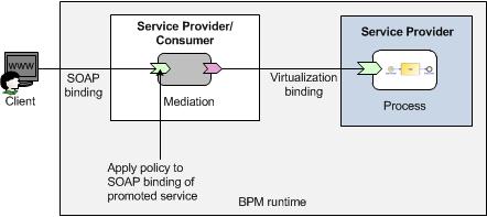 - propagates these credentials to the service exposed by the BPM process across a virtualization binding.