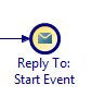 Even though throw message events (intermediate and end) may be used as a reply to an incoming message activity, when it is used as such no configuration is made on the send task that affects the interface (it is wholly derived from the incoming message activity is is associated with).
