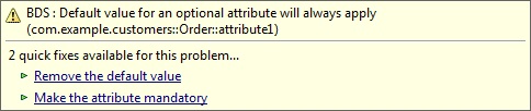 If you attempt to set a default on an optional attribute, for example, one with a potential multiplicity of zero, the following warning is generated: