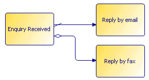 In this example, an enquiry is responded to either by email (the default), or depending on a condition, by fax.