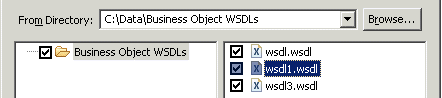 - Click the Browse button to select the directory that contains the WSDL file that you want to import. Then select the folder, and the specific WSDL files you want to import. For example: