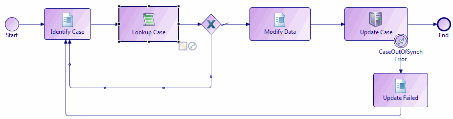 When you have generated a case data business service, you can use it to edit case data. You are most likely to do this when you have an ad-hoc request not related to one of your normal business processes (for example, a customer has notified you of a change of address, and you want to make this change independent of any other changes to their order information. In this example you could use the Update Case Data business service to make the relevant changes to their data).