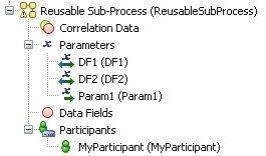 If you chose to create formal parameters for the data fields, you can see them in the Project Explorer, under the subprocess: